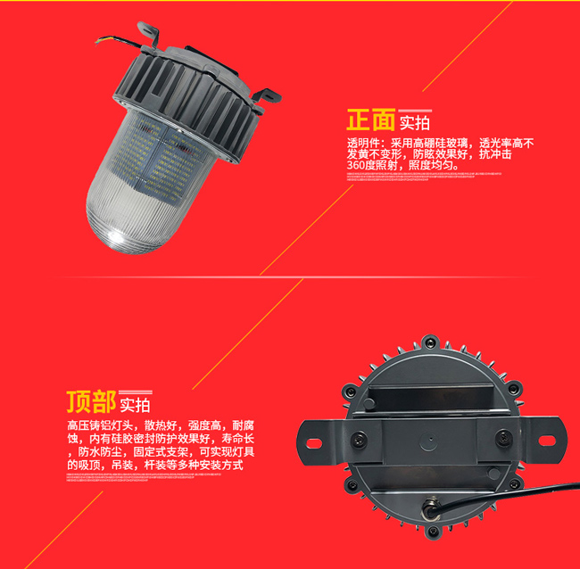 - 產品簡介:產品特點: 1.LED光(guang)源,光(guang)效高(gao),替代傳(chuan)統金鹵防眩燈。 2.運用先進的光(guang)學和(he)照(zhao)明原理優化設計透明件,光(guang)線柔(rou) 和(he),照(zhao)度均勻(yun),無眩光(guang),無重影,能有效避免作業、 施(shi)工(gong)人員產生不適合疲勞感(gan)。 3.選用高(gao)強度鋁合金外殼,進行特殊的密封和(he)表(biao)面涂層 處理,防護等級IP66,可在高(gao)溫潮濕和(he)各種(zhong)腐蝕性等 惡劣(lie)條件下長期使用。 4.座式(shi)(shi)、吸頂式(shi)(shi)和(he)側(ce)壁吸式(shi)(shi)等多種(zhong)安裝力式(shi)(shi),適應(ying)不同的工(gong)作環(huan)境。