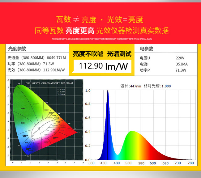 | 型號 | 功率 | 光通量 | 電壓/頻率 | 色溫 | 工作溫度 | 重量 |