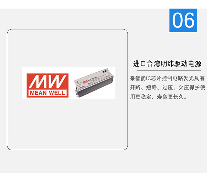4.采用(yong)LED投光燈大(da)功(gong)率專(zhuan)用(yong)定制電源,抗(kang)浪涌,高PF,寬壓(ya),無頻閃