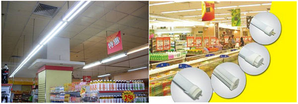 LED燈管在(zai)大型超市(shi)、商場(chang)照明(ming)應用